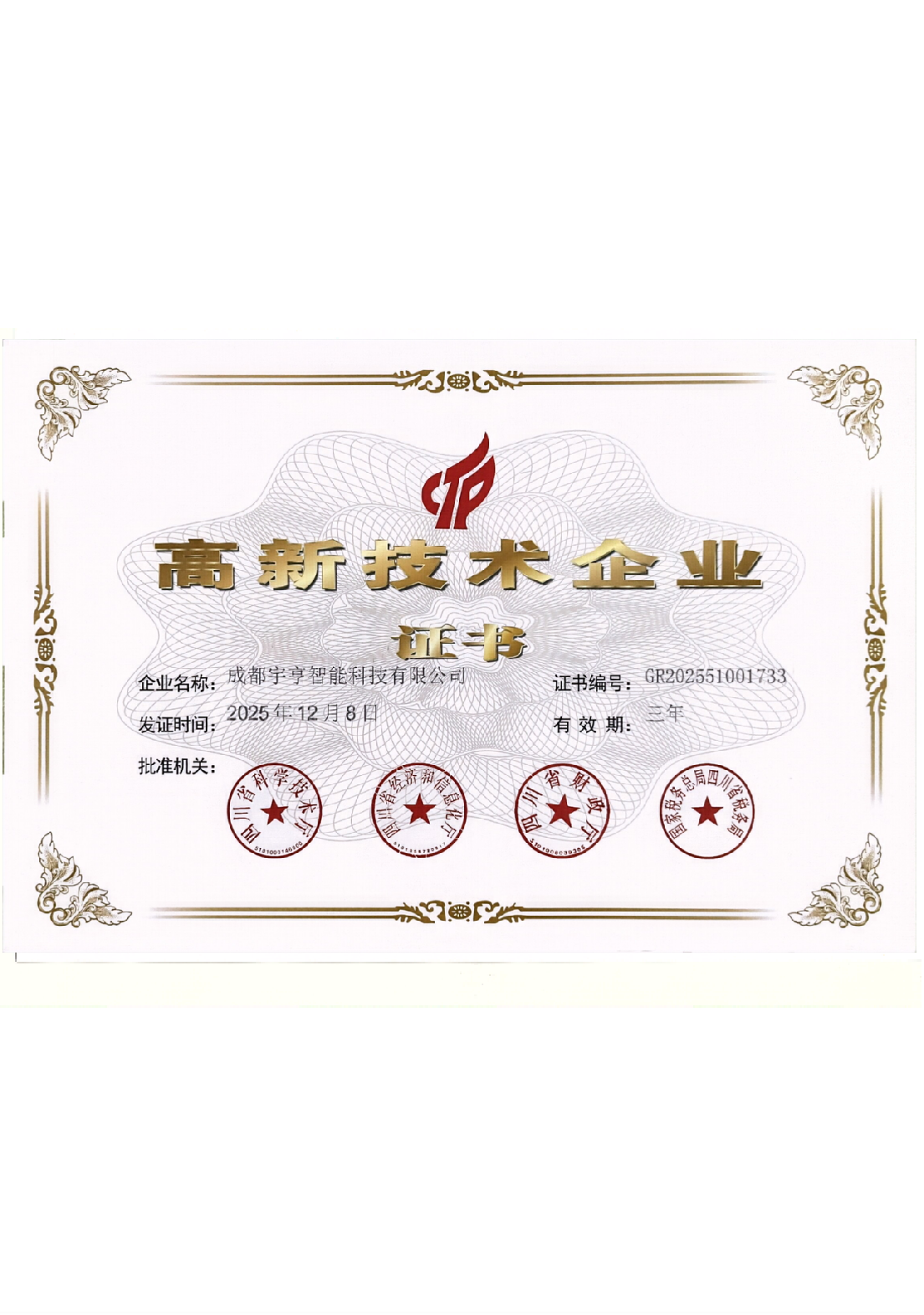 国家高新技术企业证书